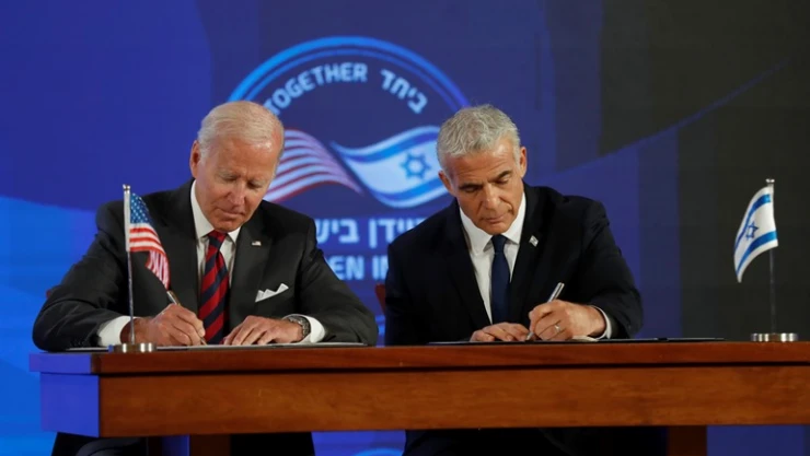 ABD Başkanı Joe Biden, İsrail Başbakanı Yair Lapid ile İran'ın nükleer silahlarını reddetmek üzere ortak bildiri imzaladı.
