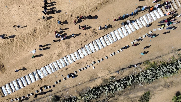 Gazze Şeridi'nde ateşkes anlaşması kapsamında İsrail'in iade etiği Filistinli cenazelerin teşhis süreci devam ediyor. Gazze Hükümeti Medya Ofisi'nden yapılan açıklamaya göre, İsrail hapishanelerinde hayatını kaybeden 54 Filistinli cenaze, Gazze Şeridi'nin güneyindeki Nasser Hastanesi'nden orta kesimdeki Deir el-Balah kentine götürülerek, toplu mezara defnedildi. Açıklamada, ailelerin cenazeleri teşhis edememesi ve İsrail makamlarının resmi isim listesi vermeyi reddetmesi üzerine defin işlemlerinin gerçekleştiği bildirildi.
