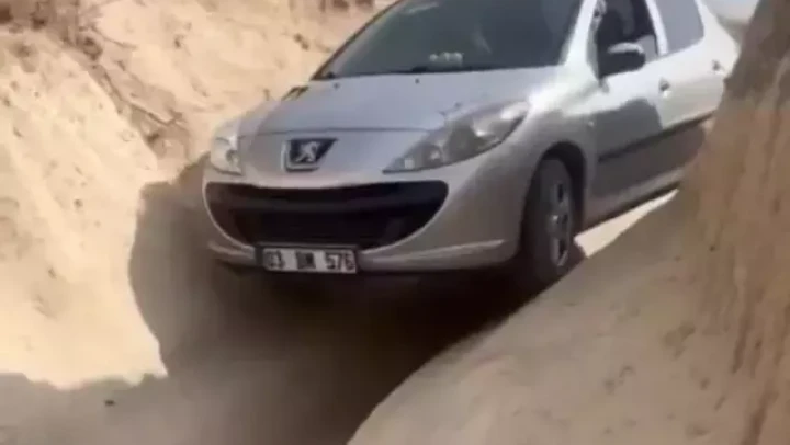 Türkiye'nin önemli turizm merkezlerinden biri olan Kapadokya'da bir sürücü, navigasyonun yanlış yönlendirmesi sonucu peribacalarının arasında ilerledi. O anlar, cep telefonu kamerasına yansıdı.
