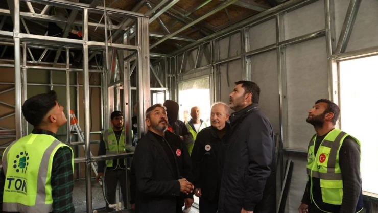 Bakan Kurum, 313 dönüm alan içerisine TOKİ ve Emlak Konut tarafından yapılacak olan ve yaklaşık 15 bin depremzedenin yaşayacağı toplam 3 bin adet geçici yaşam birimi inşaat alanında çalışmalarla ilgili yetkililerden bilgi aldı.
