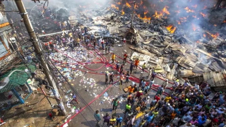 Bangladeş'te çarşıda yangın: Yüzlerce dükkan küle döndü