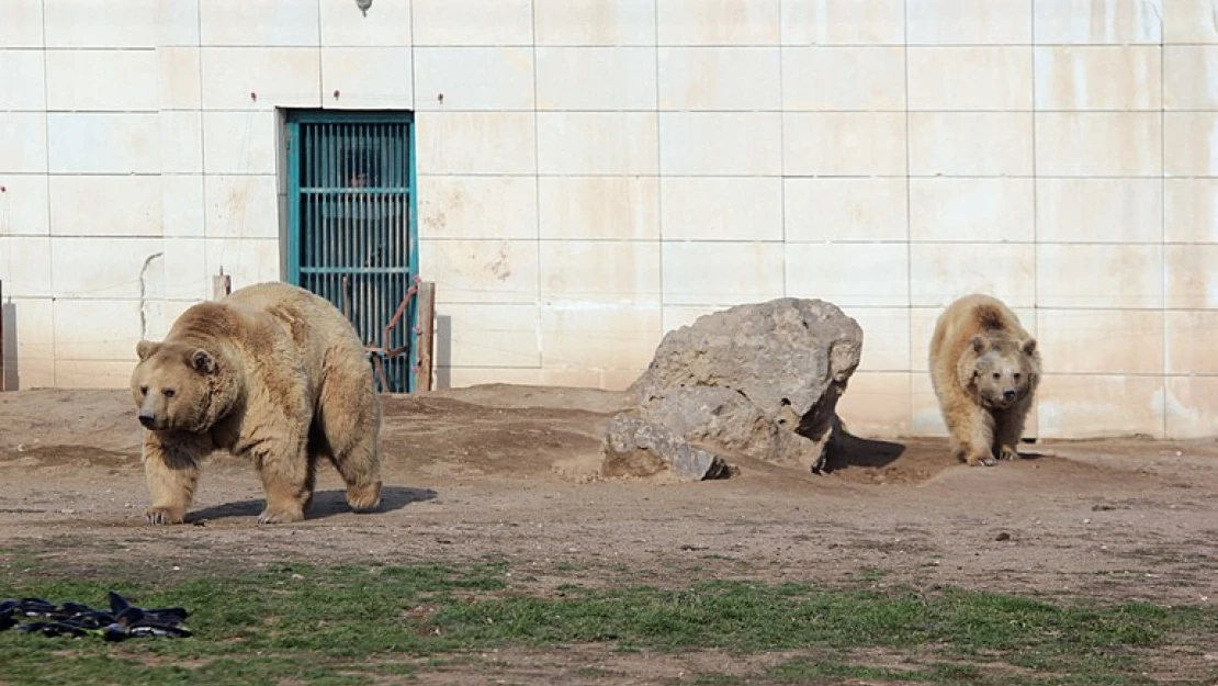 Kayseri'de hayvanat bahçesinde yaşamlarını sürdüren 7 ayı, beslenmeleri düzenli olunca kış uykusuna yatmadı.
