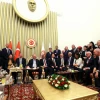 Cumhurbaşkanı Recep Tayyip Erdoğan, TBMM'nin 28. Dönem 4. Yasama Yılı açılışı dolayısıyla düzenlenen resepsiyonda parti liderleriyle bir araya geldi.