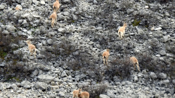 Bir vatandaşın dron ile havadan çekim yaptığı sırada ise dağ keçisi sürüsü kadraja yansıdı. Dronu yırtıcı kuş olarak kendilerine tehdit gören dağ keçileri koşarak uzaklaşmaya çalıştı. Zaman zaman da duraksayıp drona bakan dağ keçileri izleyenleri tebessüm ettirdi.