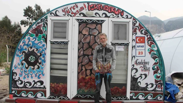 Depremin vurduğu Hatay’da yaşayan Erdoğan Akın, kentte bulunan konteynerleri boyayarak hayatı renklendiriyor.