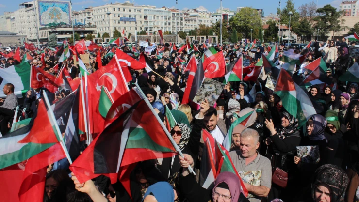 Kayseri'de Filistinli vatandaşlara destek olmak için düzenlenen 'Büyük Kayseri Mitingi'ne yüzlerce vatandaş katıldı.