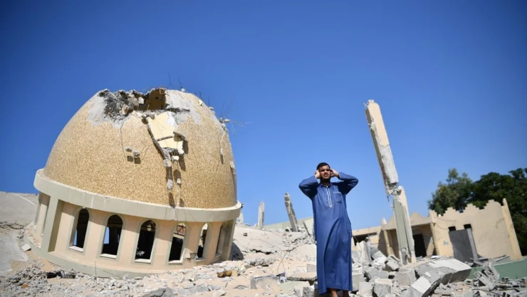 Gazze Şeridi'ndeki ibadethanelerin birçoğu İsrail'in saldırılarında yıkılırken, Filistinliler camilerin enkazı üstünde ezan okumaya devam ediyor.
