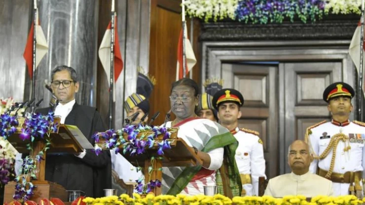 Ülkede eski Cumhurbaşkanı Pratibha Patil'den sonra koltuğa oturan ikinci kadın olarak görev alan Murmu için başkent Yeni Delhi'deki Başkanlık Sarayı'nda tören düzenlendi. Törende yemin eden Murmu görevine resmen başladı.