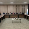 Senato Salonu’nda Rektör Prof. Dr. Kurtuluş Karamustafa, ORAN Kalkınma Ajansı Genel Sekreteri Ahmet Emin Kilci, rektör yardımcıları,