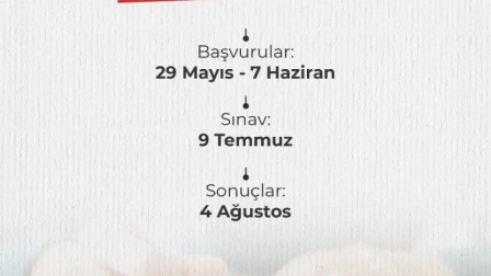 "Yazılı sınav için internet üzerinden başvuru ve onay süreci 29 Mayıs-7 Haziran tarihleri arasında yapılacak. Başvuru tarihinin son günü saat 18.00’de onay süreci tamamlanacak.