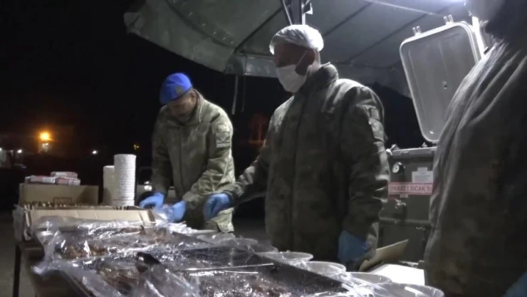 MSB’nin sosyal medya hesabından yapılan paylaşımda, “Deprem bölgesinde vatandaşlarımız için sıcak yemek dağıtımına aralıksız devam eden Mehmetçik, Berat Kandili dolayısıyla vatandaşlarımıza lokma tatlısı da ikram etti” denildi.