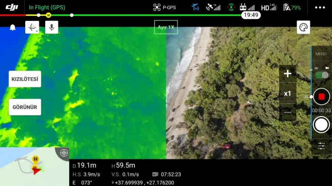 Aydın’da sahaya inen ‘koruyucu kartal’ mikro İHA’lar, Dilek Yarımadası Milli Parkı’nda orman yangınlarına karşı görev yapıyor. Yapılan denetimlerde termal sıcaklık yer yer 60 dereceleri görürken, vatandaşlar orman yangınlarına karşı uyarıldı.