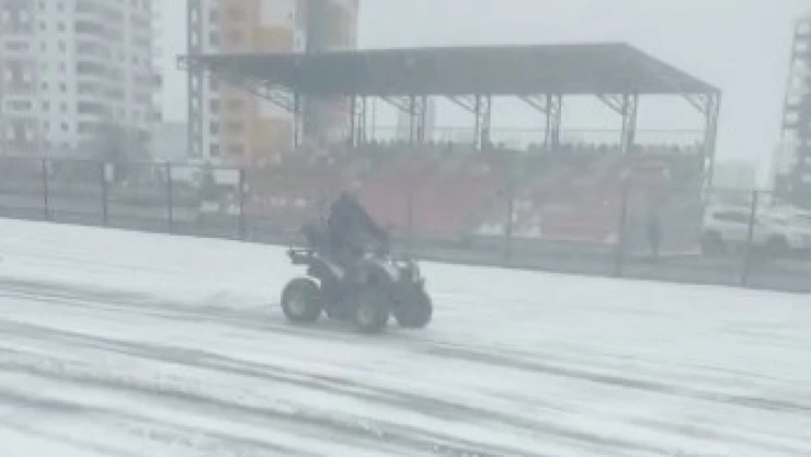 Futbol İl Temsilciliği karşılaşmanın oynatılabilmesi için yoğun kar yağışına rağmen sabah saatlerinde temizlik çalışmalarını başlattı.
