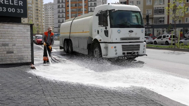 Çalışmalar çerçevesinde cadde ve sokaklar özel temizlik malzemeleri kullanılarak yıkanırken kaldırımlar başta olmak üzere yabani otların yoğun olduğu yerler ilaçlanarak otlardan arındırıldı.