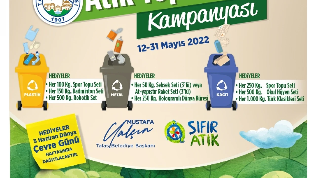 Talas Belediyesi tarafından 'Doğaya Nefes, Geri Dönüşüme Destek Olalım' sloganıyla okullar arası atık toplama kampanyası başlatıldı.