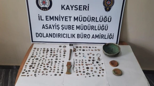 Kayseri'de polis ekipleri tarafından yapılan uygulamada tarihi eser olduğu değerlendirilen objeler ele geçirildi.