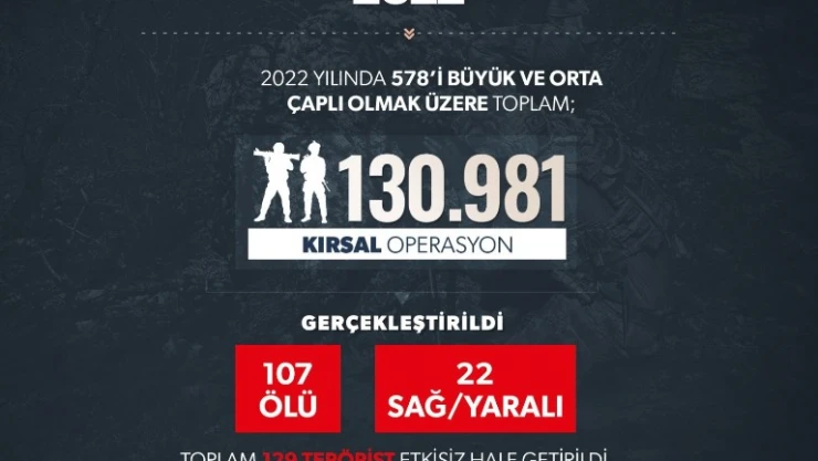 Allah'ın izniyle Cumhuriyet'imizin 100. yılında, sınırlarımız içerisinde dağlarda bir tek terörist kalmayacak. Terörle mücadelede 2022 yılında” ifadelerine yer verdi.