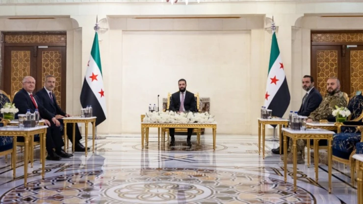Dışişleri Bakanı Hakan Fidan, Milli Savunma Bakanı Yaşar Güler ve Milli İstihbarat Teşkilatı (MİT) Başkanı İbrahim Kalın, Şam'da Suriye Devlet Başkanı Ahmed eş-Şara ile bir araya geldi.