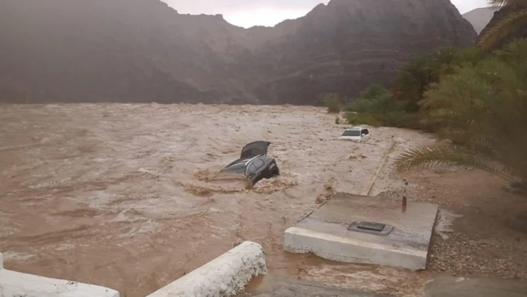 Umman'ın Nizwa ve Sinaw kentlerinde meydana gelen sellerde, çok sayıda araç sel sularına kapılarak sürüklendi.